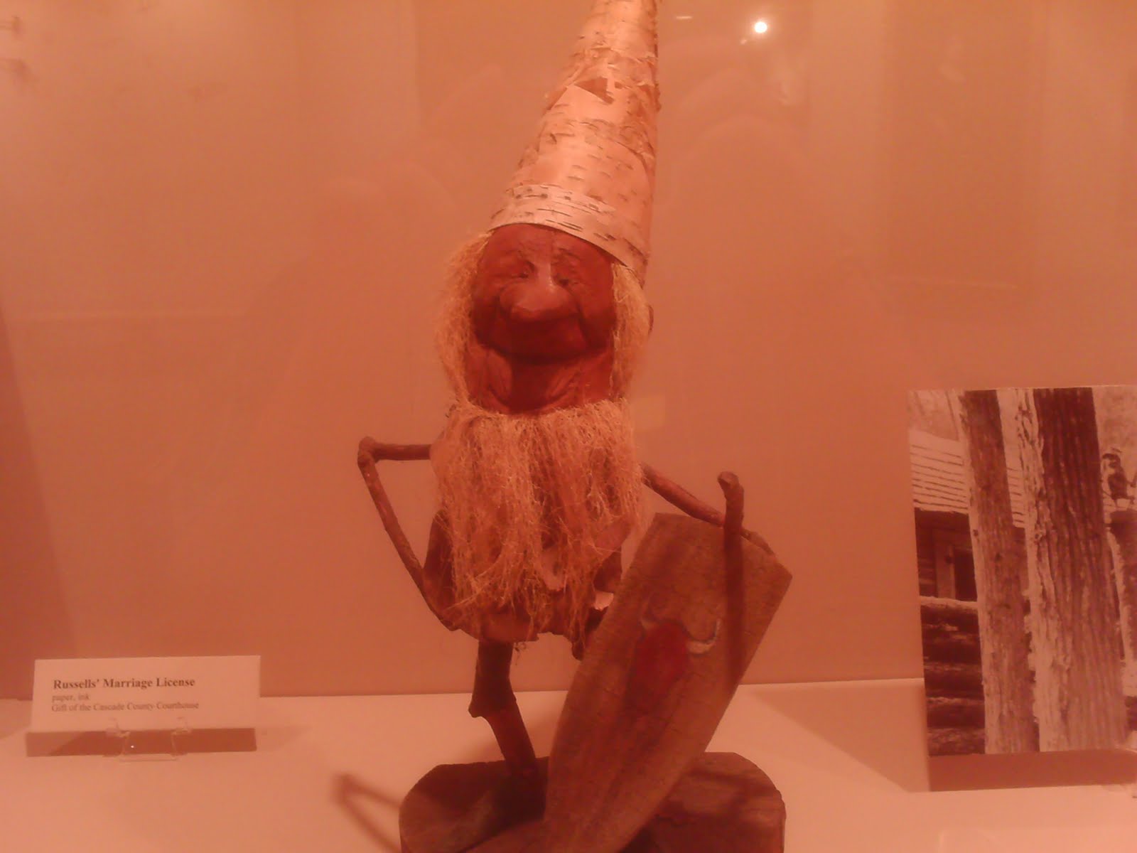 We went to the CM Russell Museum in Great Falls today. Charles Russell is a famous "cowboy painter," but this was the first I'd heard of him. The museum is attached to his house and the log cabin that he used as a studio, and we looked at those first. The cabin had some Native American items in it, and I think part of it and the house were supposed to be set up the way they would have been/might have been set up when Charles and Nancy Russell lived and worked there.